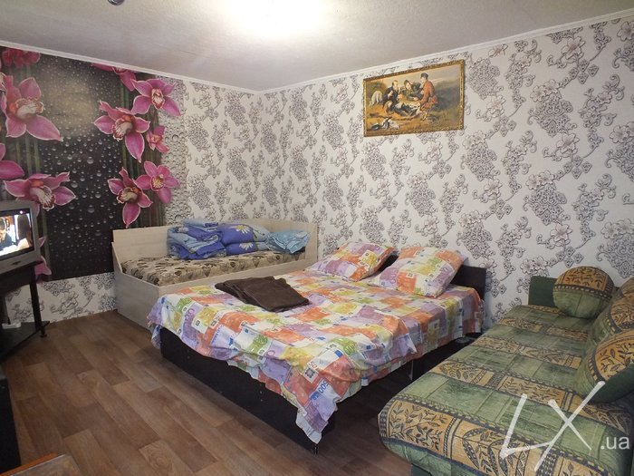 Від 7 днів для робітників до 4-х чоловік, від 200грн. до 150грн., без комісійних. Є два односпальних ліжка, одне двуспальне, телевізор(100 каналів), холодильник, пральна машина, газова плита, мікрохвильовка, посуд, постільна білизна, рушники. В ціну за добу входить користування ТВ, водою, світло+газ до 20грн., до 30грн.(зимовий час). Поруч магазини, базарчик, АТБ(цілодобово). Час заселення після 14-00(раніше за згодою), час виїзду до 12-00. Заселення з тваринами, циган та від громадян РФ не приймаємо. Застава-500грн.